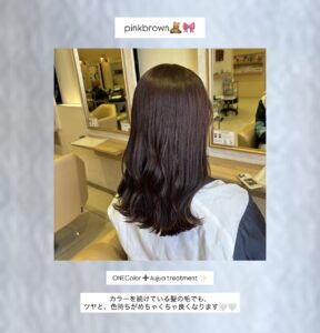 いつものブラウンカラーに、少しピンクの色味を入れるだけで、お洒落な印象になりますよ〜!!